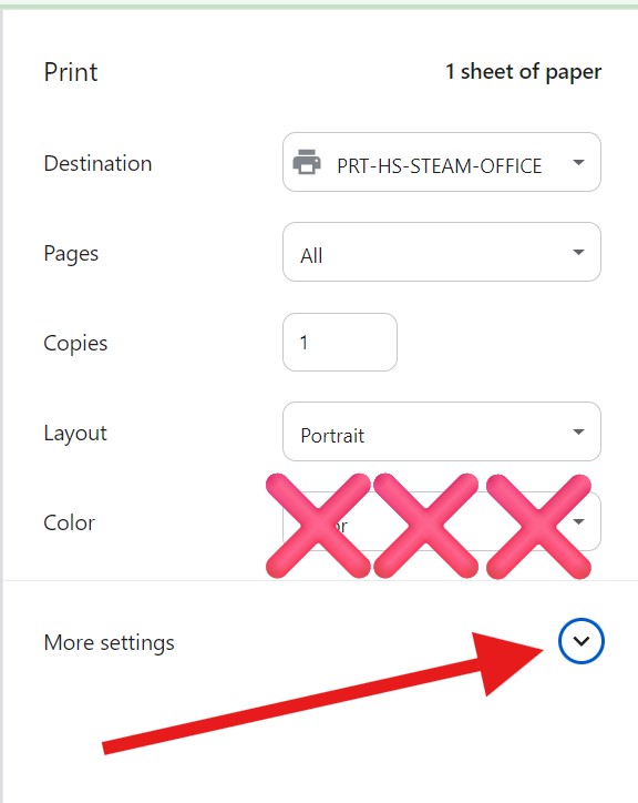 Ignore the Color setting in Chrome. The printer will not respect this setting. Select "More settings".